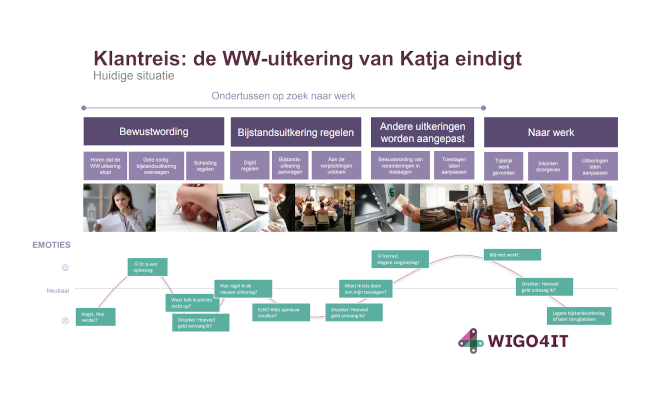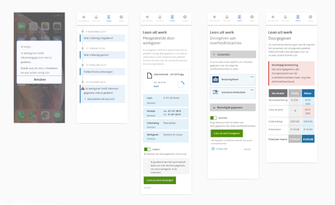 Meet Katja, the persona created at Wigo4it that inspired this concept. She is a single mother living in the Netherlands who is busy looking for a job while receiving the last month of her unemployment benefits. Because she has just gotten a divorce, she needs to find financial support for the coming months. She will apply for local social benefits and she will continue to live in this emotional and financial rollercoaster: from feeling relieved of having found a solution for the next months, to being frustrated and uncertain in a complex digital journey influenced by multiple government organizations (employee insurance agency, municipality, tax office, among others). Her income is affected by around 20 different regulations (read more about regulations in this blog written by Larissa Zegveld- in Dutch). Katja has no idea if she can count on income coming month, nor how much it would be. She is also afraid of possible returns or, even worse, building up a debt with the government.Fragmented interaction with multiple government agencies: users are forced to fill in their data multiple times in different systems, even if the government already has access to their data. They are also expected to know or find out by themselves which specific government organization they must approach based on the needed service or support.