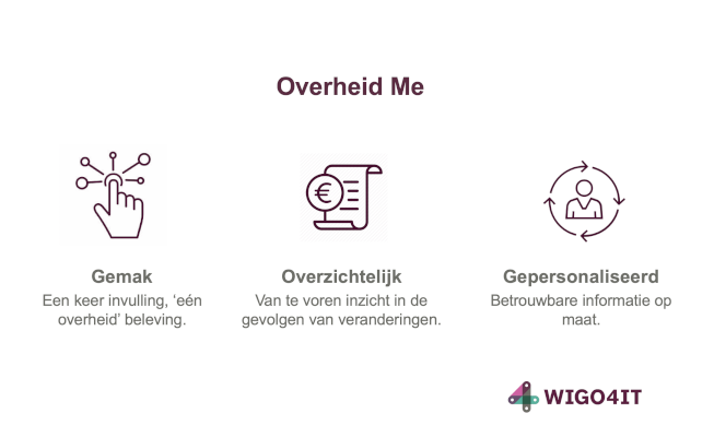 Ease of use: Overheid Me envisions an integration with a Digital Identity manager, enabling citizens to decide on and manage their data effectively in their interaction with multiple government agencies. No more multiple filling in of the same data for a government-related process.